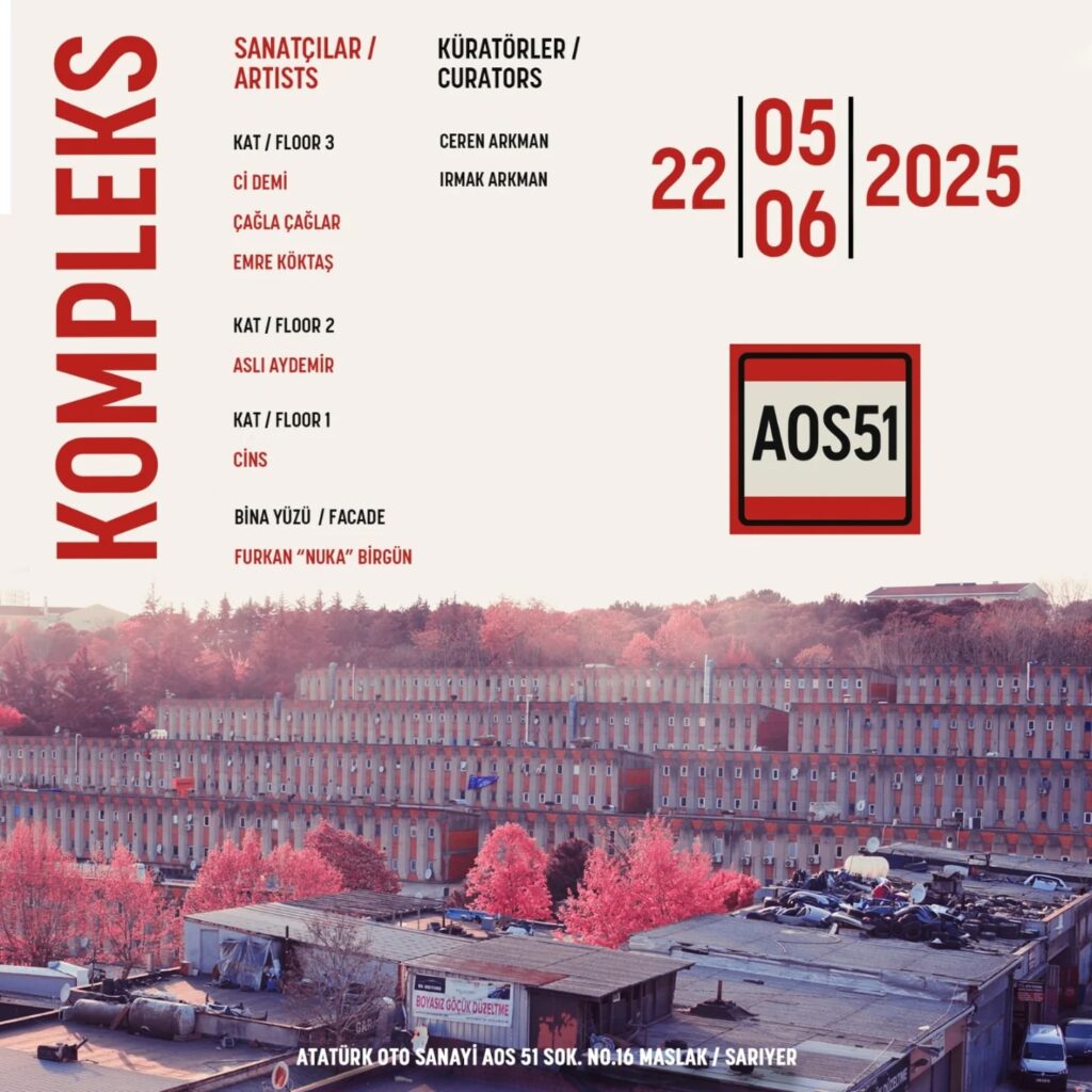 Kariyerleri boyunca sanatı sanat mekanlarının dışına çıkarmaya, demokratikleştirmeye ve şehre dahil etmeye odaklanan işlere öncelik veren küratör ikili Ceren ve Irmak Arkman ile içinde konumlandığı mahallenin ruhunu yansıtmak isteyen AOS51 ekibinin ortaklık süreci KOMPLEKS sergisinin merkezinde yer alıyor.